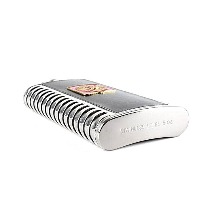 This made-in-Russia flask consists of stainless steel and smooth, black imitation leather, with the Russian Federation symbol of the double headed eagle stamped on the front. The double-headed eagle is a Byzantine symbol adopted by Russia as early as 1497. The crest of St. George is displayed in the center, while the two heads represent Russia's long stretching boundaries to the east and west. This cool flask would be a wonderful addition to your outing or party!