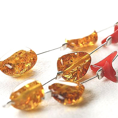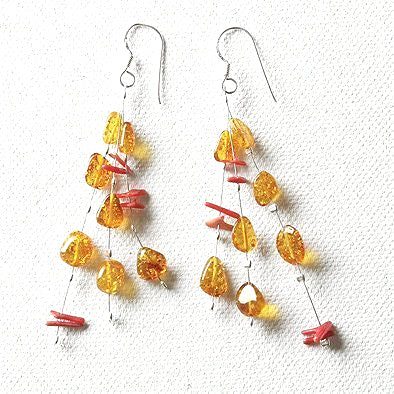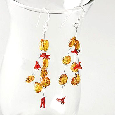 Amber and Coral Drops Earrings
