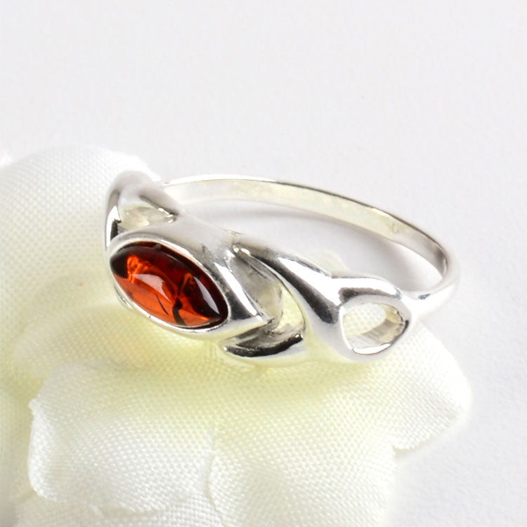 Amber Celtic Silver Ring