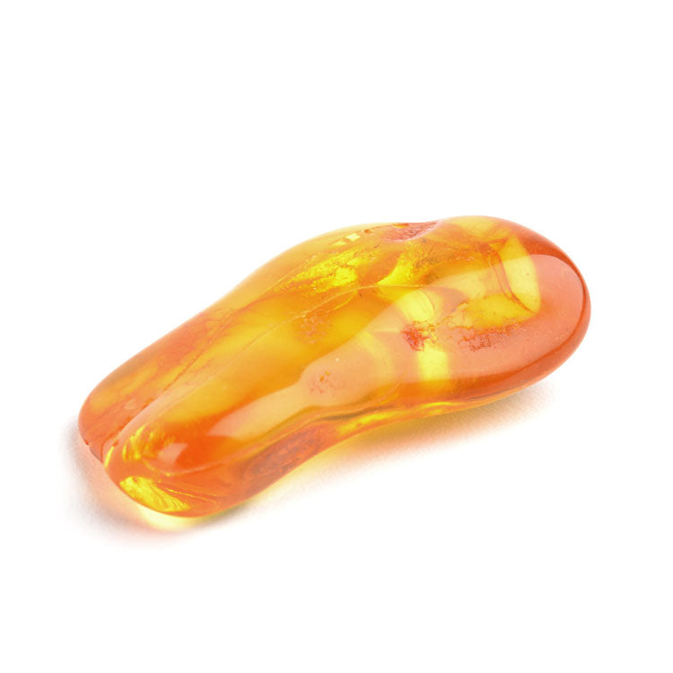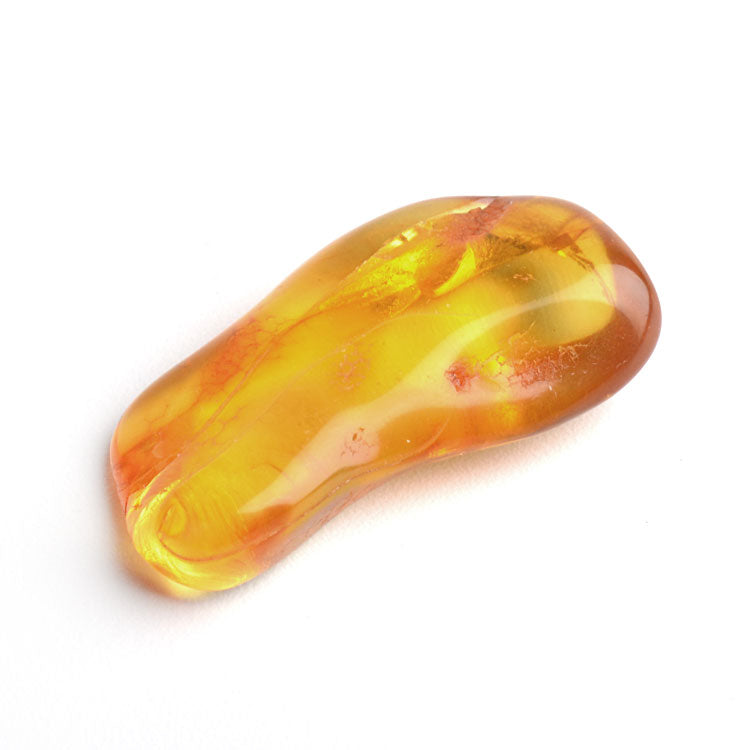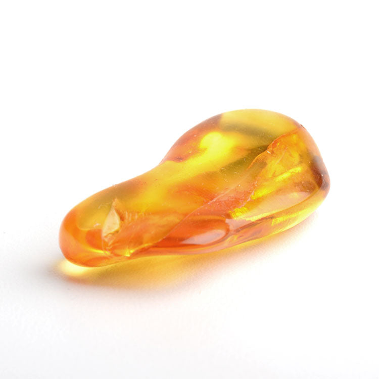 This fairly smooth chunk of honey amber from the Baltic Sea in Russia, has its own natural cracks, grooves, and inclusions. It glows effortlessly in the sunlight. This lightweight gemstone is used for many types of jewelry, but it can also be used as a healing stone, or even just as a decoration in the home. This nearly 1 1/2" x 1" x 1/2" stone is small enough for a pocket. Makes a special gift for anyone.
