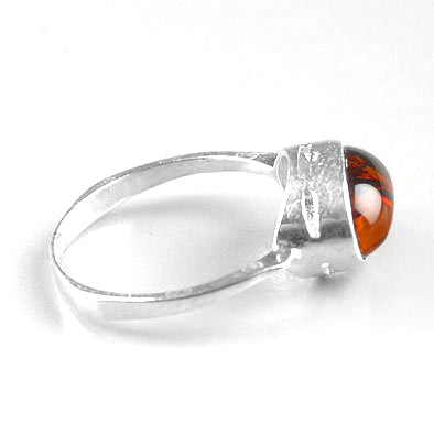 This dark honey amber ring is hand made by Russian craftsman. Its deep honey oval Russian amber stone is set in a silver band.