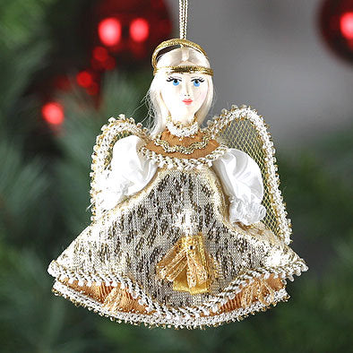 This unique Russian Christmas Angel features a hand-painted porcelain face and hand-crafted lace dress. This simple yet elegant ornament doll would make the perfect addition to any holiday décor. Due to the fact that each doll is made by hand, design may vary sightly.