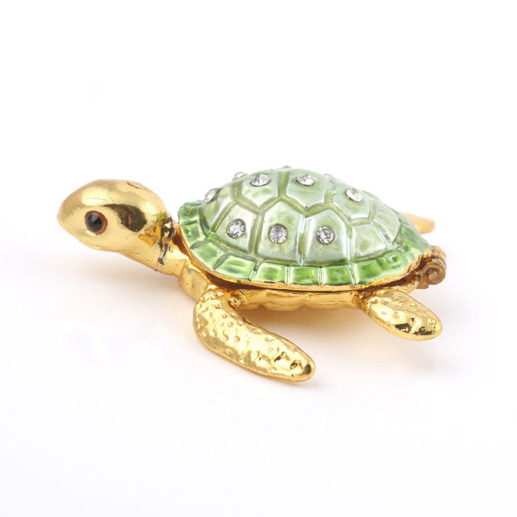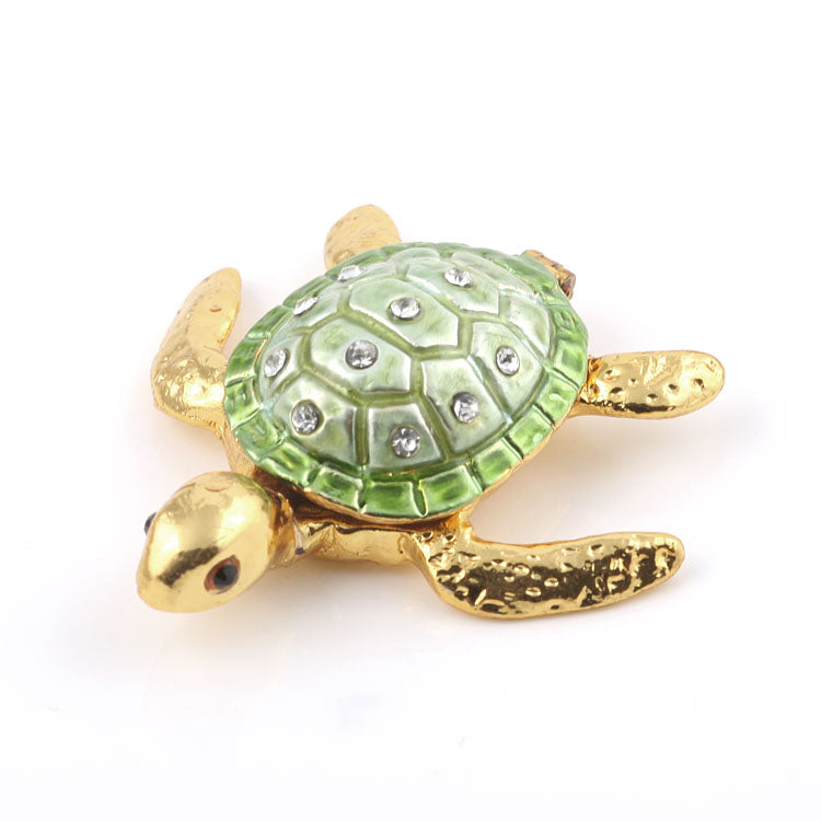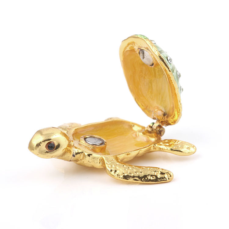 This Faberge style trinket box is constructed from a pewter base. The box is hand enameled, and decorated with Austrian crystals. These beautiful keepsake boxes are similar in style to the jewelry boxes made famous by 19th century jeweler Carl Faberge, whose jewelry boxes are world renowned. Many of Faberge boxes were enameled just like these trinket boxes. His boxes were even displayed by members of the Romanov Dynasty.