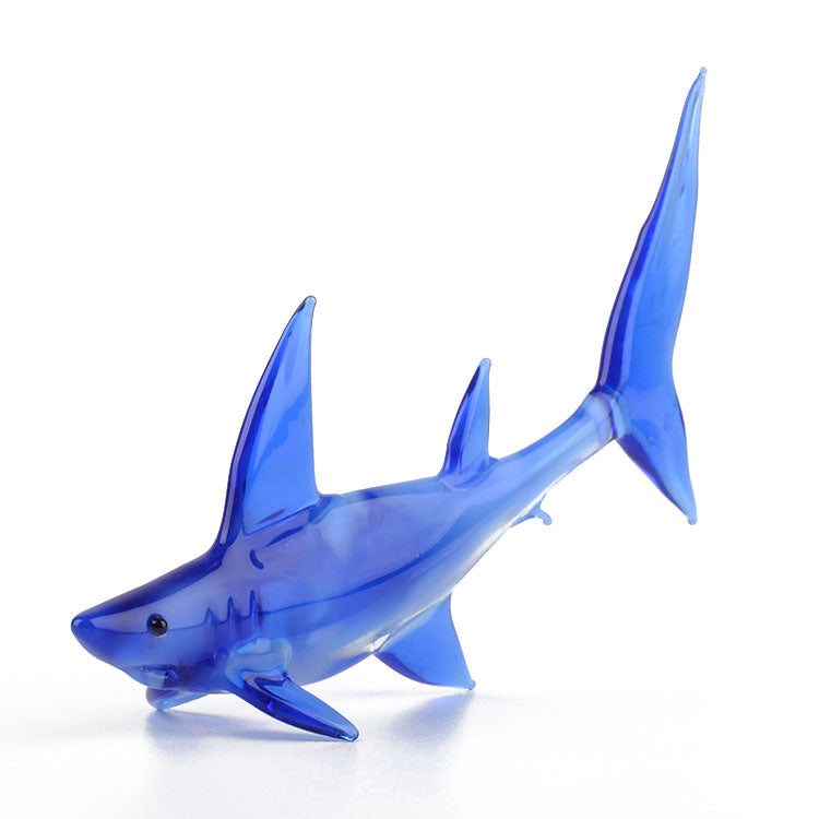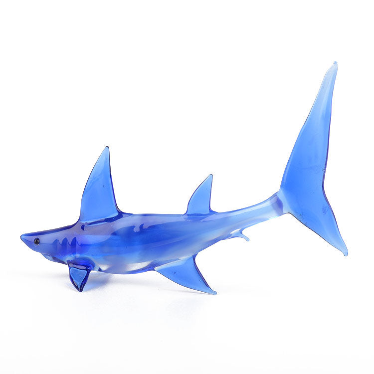 About 5 1/2" long blue shark was Hand-blown by a Russian glassblower with care and small details. The semi-transparent blue color looks lovely in all varieties of lighting. This blue shark is a Requiem shark, part of the Carcharhinidae family. A unique gift for the sea lover! Because each figurine is crafted by hand, colors may vary and no two are exactly alike. Colors may vary slightly. All pieces are produced in limited quantities.
