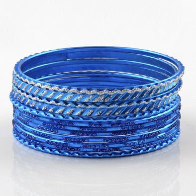 Blue Glitter Fashion Bangle Bracelet Set