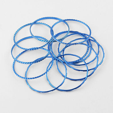 Wear this set of glittering blue bangle bracelets Mixed with silver jewelry to add a bit of color to your ensemble. Each bangle features a different glitter design. Comes with 12 bangles.