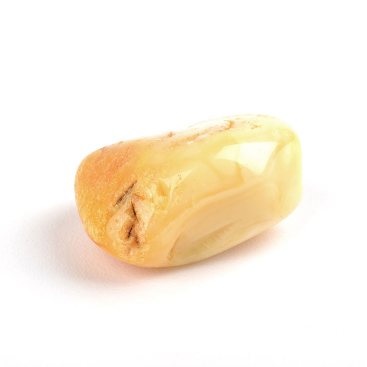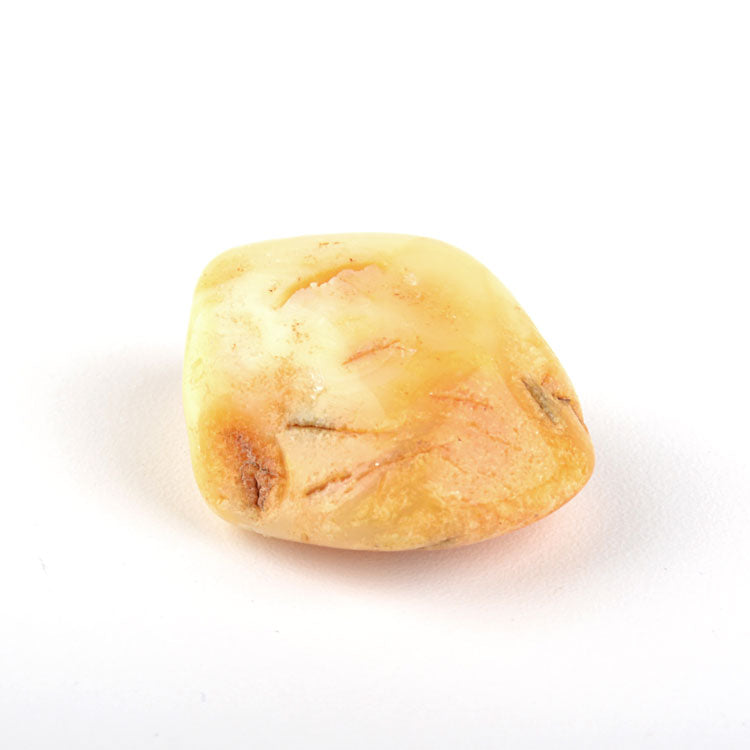 Authentic, opaque amber nugget, great for anyone to collect, straight from Russia. This chunk of butterscotch-colored amber has natural cracks, grooves, and inclusions that can easily be seen. As butterscotch amber becomes more rare, anyone would love to have something like this- for decorating, jewelry-making, or simply holding onto, as amber is said to have healing properties when held closely to the skin.