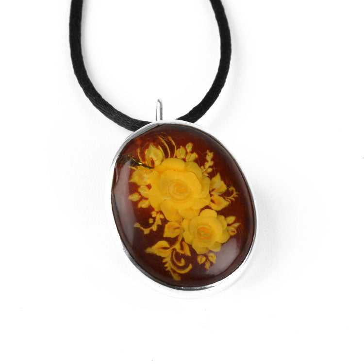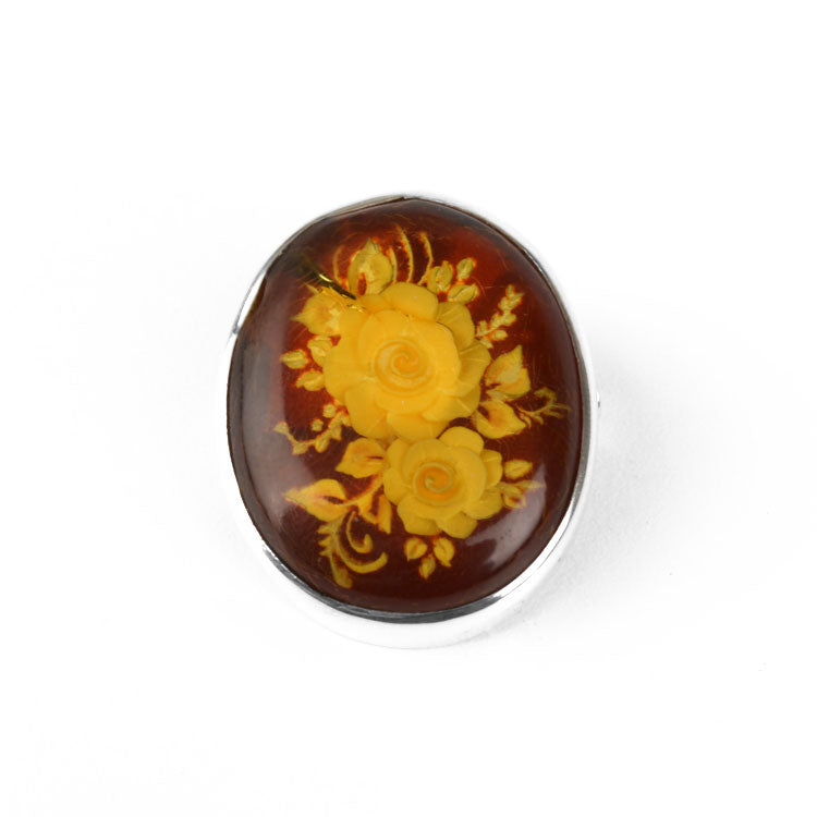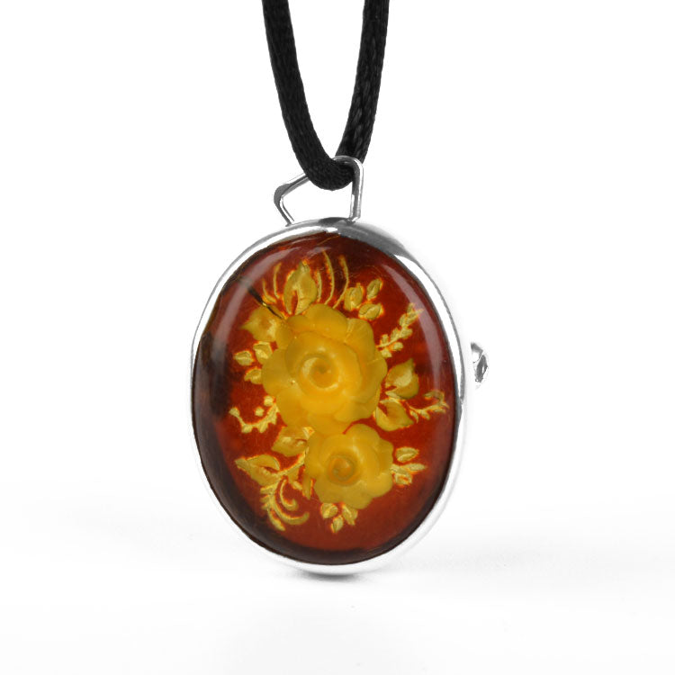 Carved Roses in Amber Pin or Pendant (AS IS)