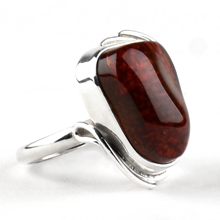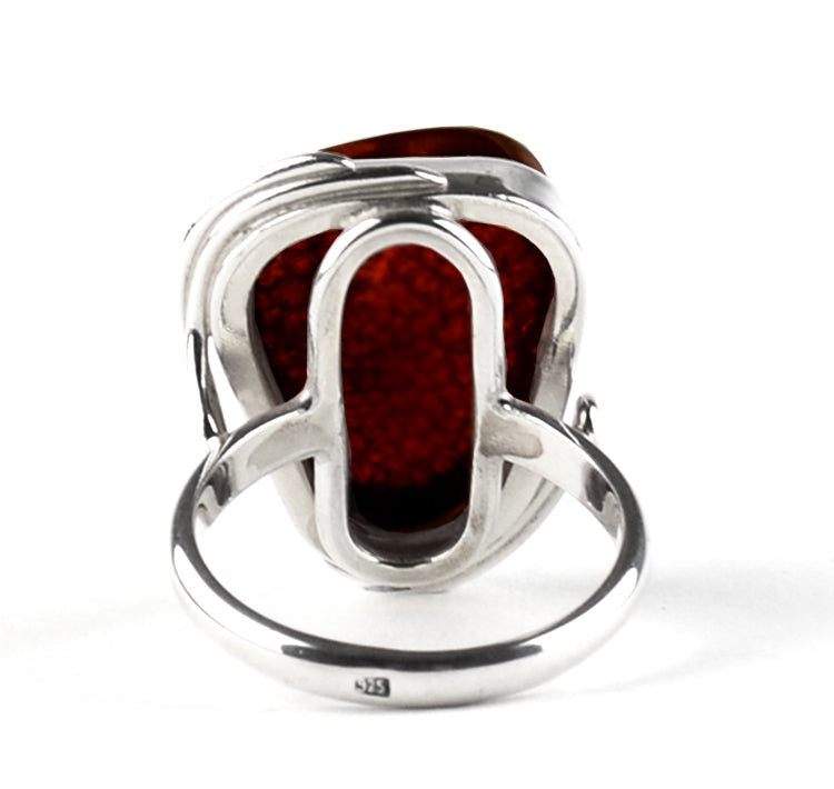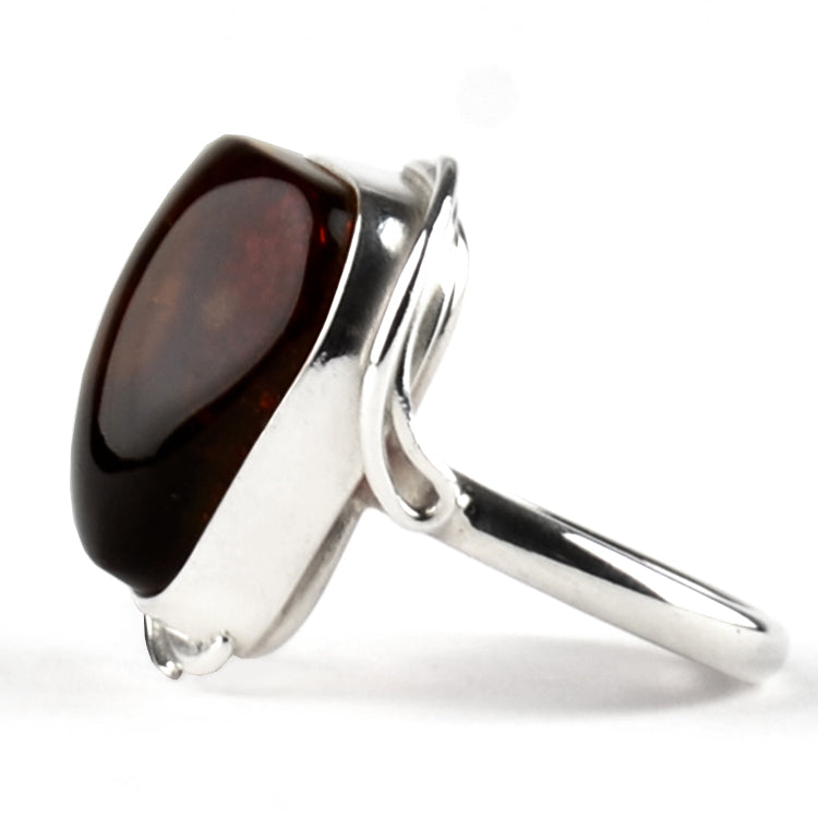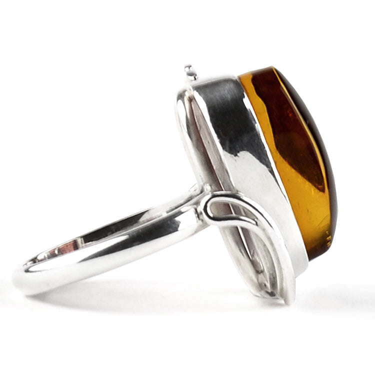 Cognac Amber Sterling Silver Ring