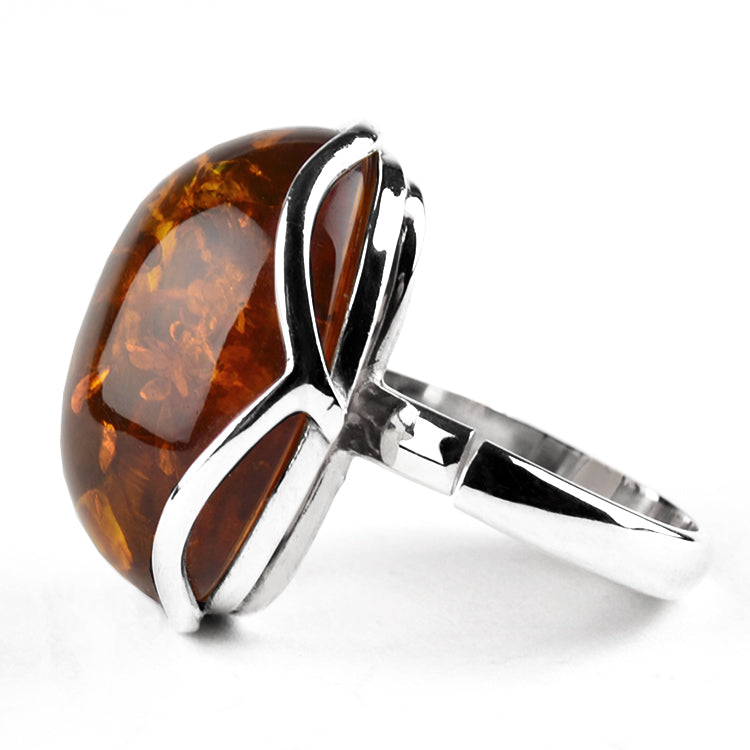 Cognac Baltic Amber Silver Ring