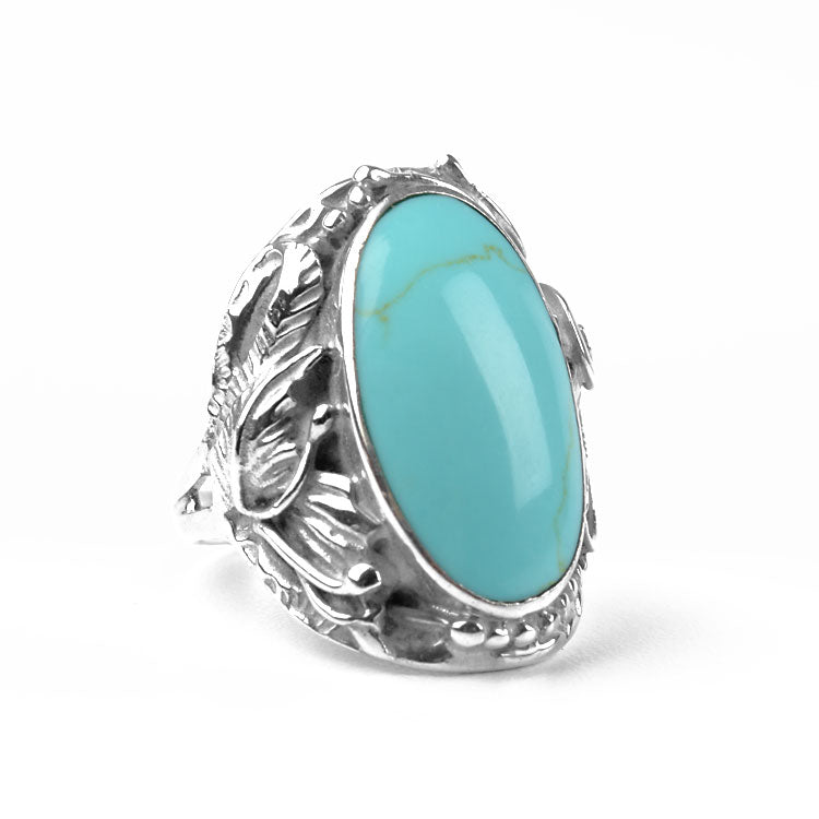 Comfy Turquoise & Silver Foliage Ring