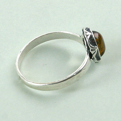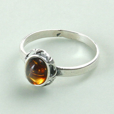 This simple yet elegant sterling silver ring was imported from Russia. It features a honey amber stone that measures Approximately 10mm by 5mm.