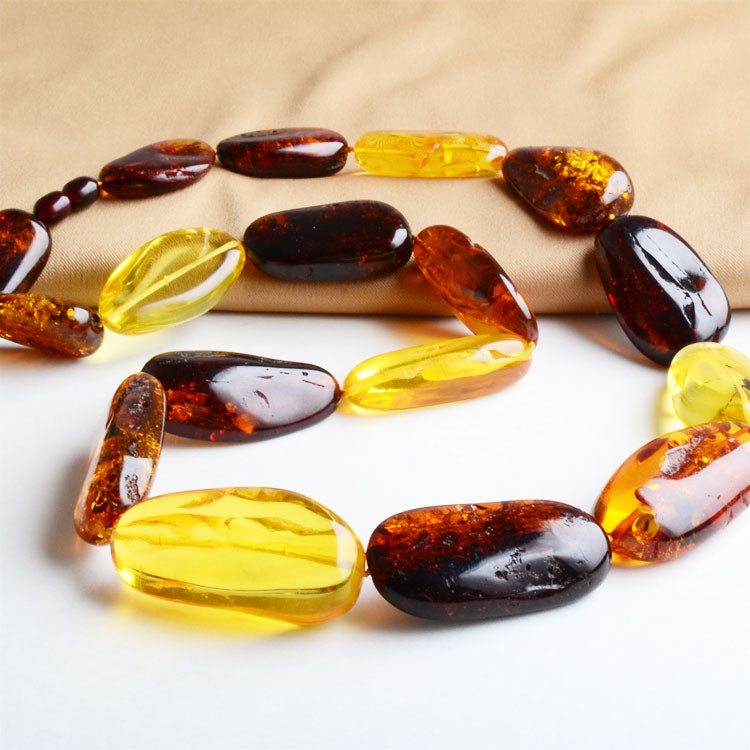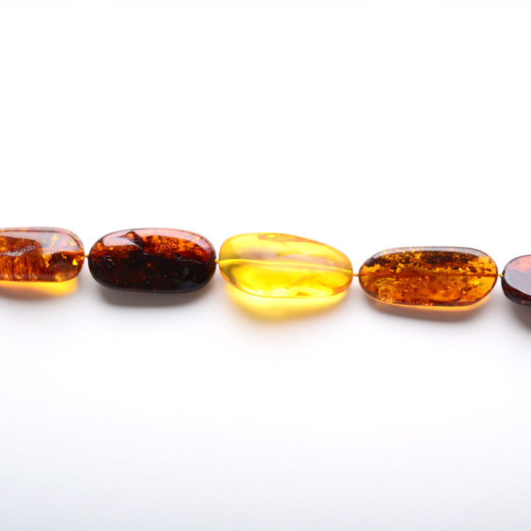 This necklace features seventeen beautiful Baltic amber stones, arranged from smallest to largest, on one strong thread. A hidden barrel screw clasp holds the necklace together and the thread is individually knotted in-between each stone for added elegance. Each piece of our jewelry is hand crafted and each amber stone has its own uniqueness, therefore they might slightly differ from the photograph.