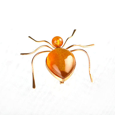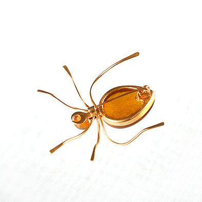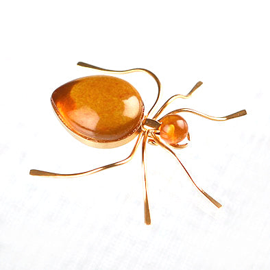 This beautiful golden amber ant pin is hand made by Russian artisans from two large honey amber stones set in gold plated wire.