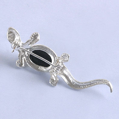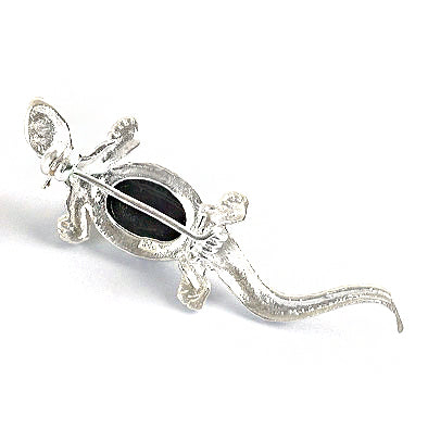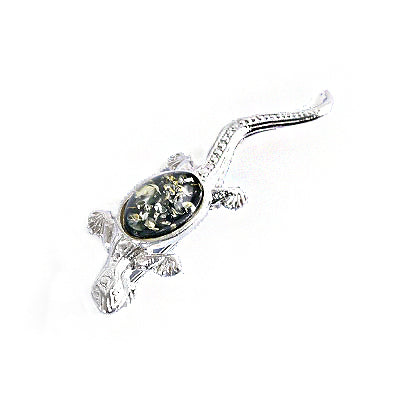 This hand-crafted lizard or gecko pin is made of sterling silver adorned with a green amber stone. Imported from Russia.