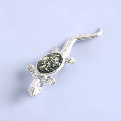Green Amber Lizard Pin