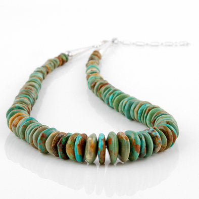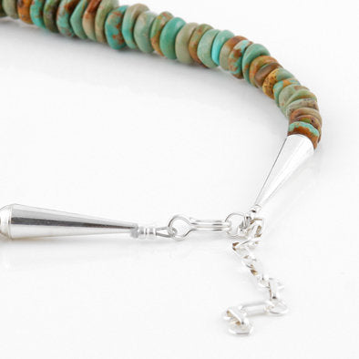 This exceptional, eye catching 100% natural green turquoise jewelry piece really showcases the beauty of nature. The earthy tones will look great with many outfits. Features a sterling silver clasp.