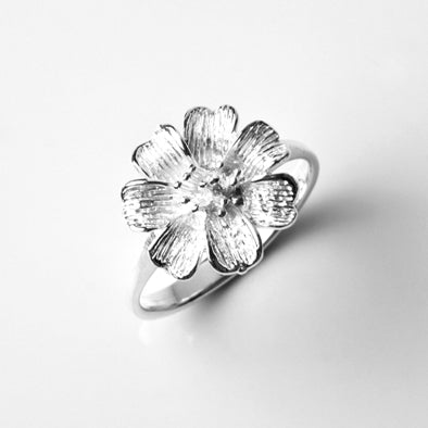 This trendy, contemporary .925 Sterling Silver ring has a dynamic design featuring Hawaiian Hibiscus Flower. To add a light textured look to the flower, the petals were brushed to create a brushed matte finish. The flower measures 9/16" in diameter. Add an instant glamour to your daytime or evening attire.