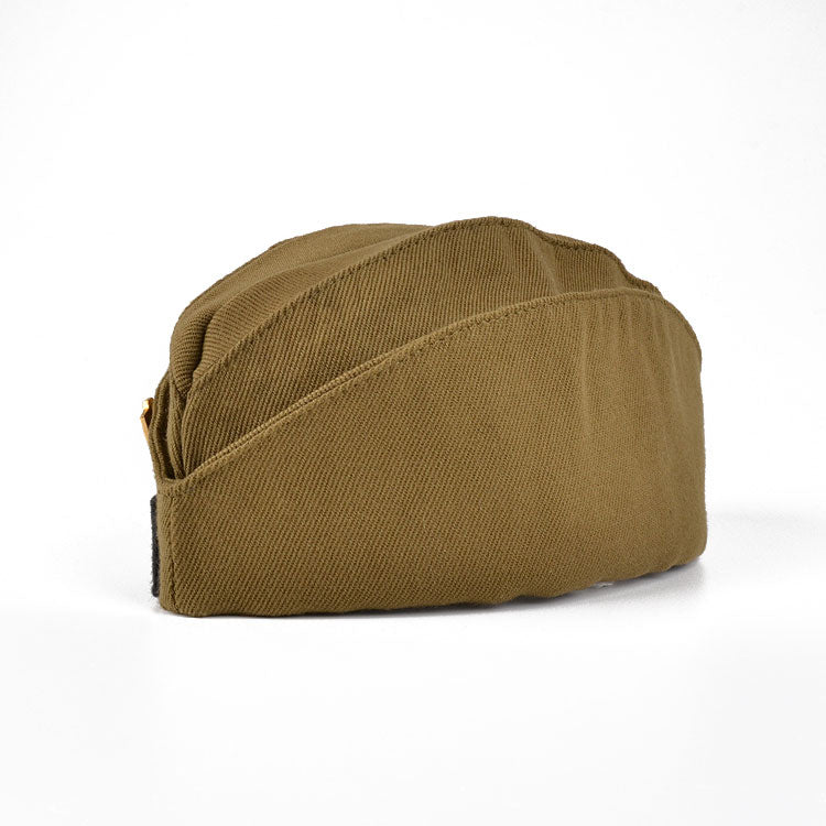 Pilotka is Russian military summer cap for soldiers, known in U.S. as the garrison cap. It is made from original Soviet surplus cotton material in green khaki color. It has a collection of several Russian pins pinned to one side of the hat. It also has the Soviet army military sleeve patch of construction battalion, and lapel borders. Collection and number of pins slightly vary from hat to hat. This size Small hat is ideal for collectors of Russian military items. Variety of the pins may vary.