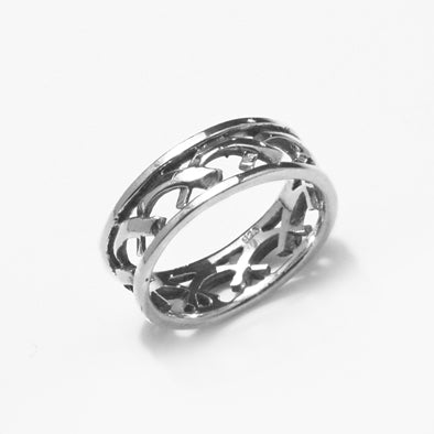 Let this Silver Ring Of Kisses send your message of Love. This contemporary unisextra .925 Sterling Silver ring has a dynamic design featuring a Celtic style band. Can be worn as a wedding band or as a dramatic right-hand ring. Band width measures 7mm (1/4").