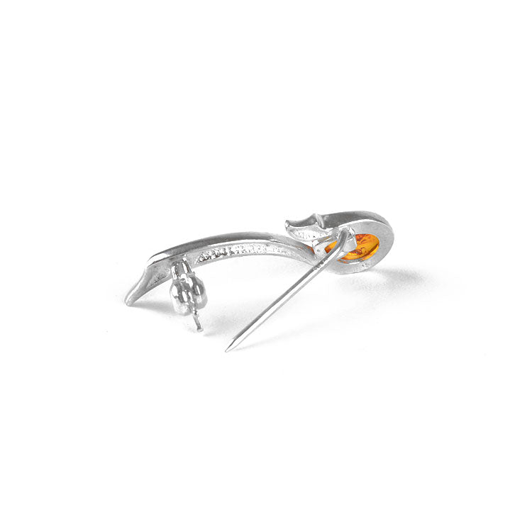 Small Amber teardrop in Silver Pin