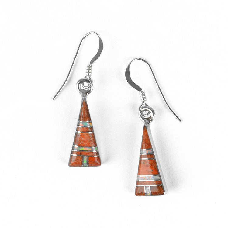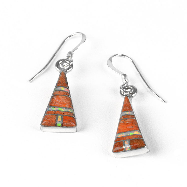 Spiny Oyster & Opal Triangle Earrings