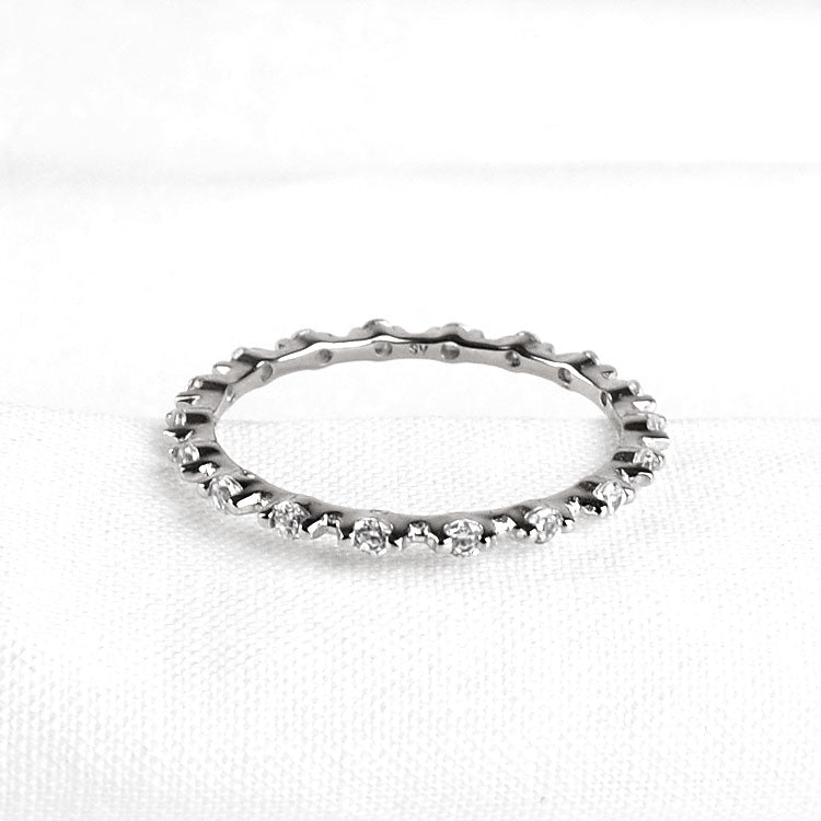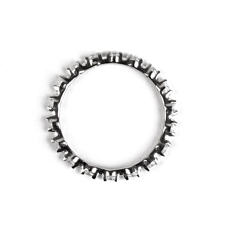 This simply silver and cubic zirconia ring looks great stacked with other stacking rings, or by itself. Because this simple design will never go out of style, it is the perfect gift for those who are really hard to shop for.