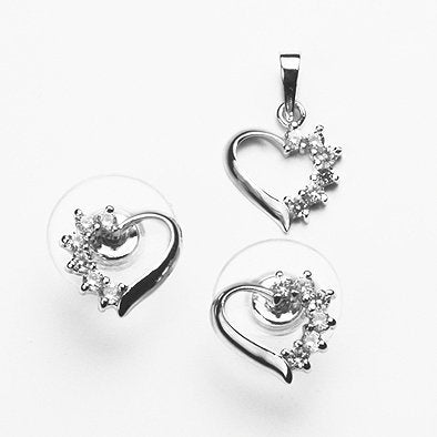 Sterling Silver Crystal Heart Earring and Pendant Set