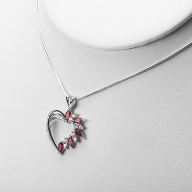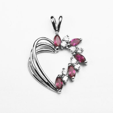 This lovely and elegant pendant features a heart adorned with Austrian Crystals. The colored crystals measure Approximately 1/8" in length and 1/4" in width. The smaller white crystals are Approximately 1/16" in diameter. The pendant is comprised of genuine .925 sterling silver, and the pendant as a whole measures 1 1/4" x 13/16". A great gift for any occasion.