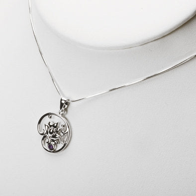 This stunning .925 sterling silver pendant measures Approximately 1 1/8" in length and 3/4" in width. It features a beautiful pink crystal which has a diameter of 1/8". Great for any occasion, and any age, this pendant would make a perfect addition to your jewelry box.