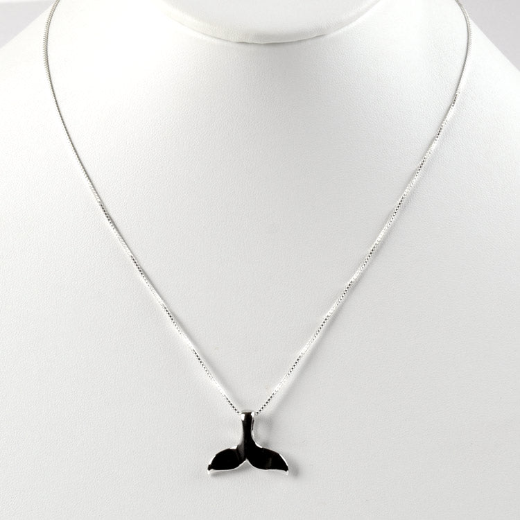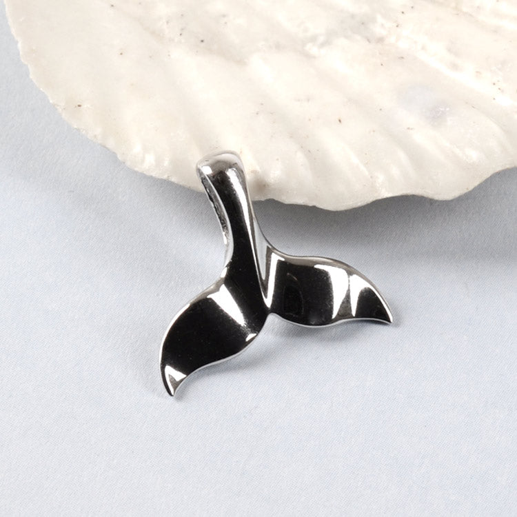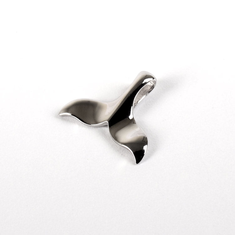 This simple yet sleek pendant of a whale's tail is the perfect accessory for those who love the ocean! The animal's tail is highly polished sterling .925 silver, that has a nice wave to it! The tail doubles as the bail on this 3/4" x 3/4" pendant.