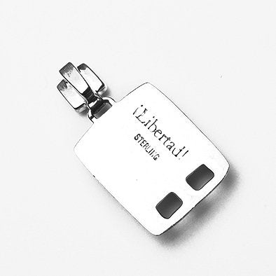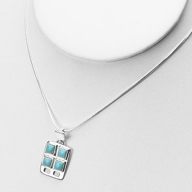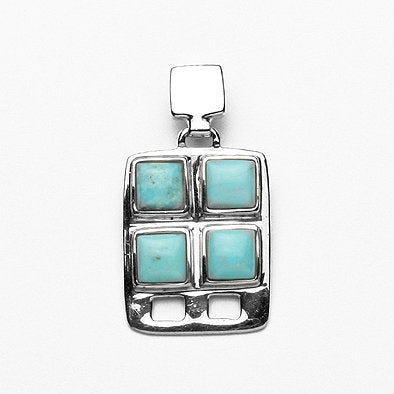 This beautiful silver pendant features four square turquoise stones. The pendant measures Approximately 1 1/4" x 5/8". The natural beauty of the turquoise contrasts gorgeously against the shimmering .925 sterling silver. Makes a great gift for any occasion.