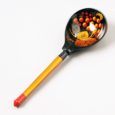 This authentic Khokhloma (Hohloma) soup spoon set was handmade and imported from Russia. Features classic leaves and berries design. Color/design may vary. Safe for food.
