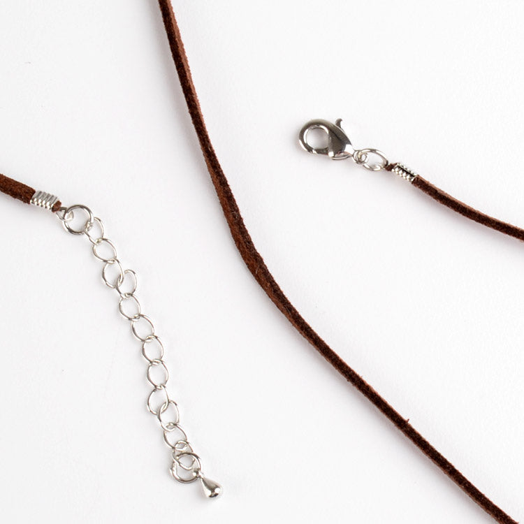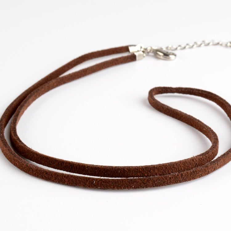 This soft unisextra brown suede cord for pendant measures 18" to 20" long. A large pendant would look great with this 1/8" wide cord.