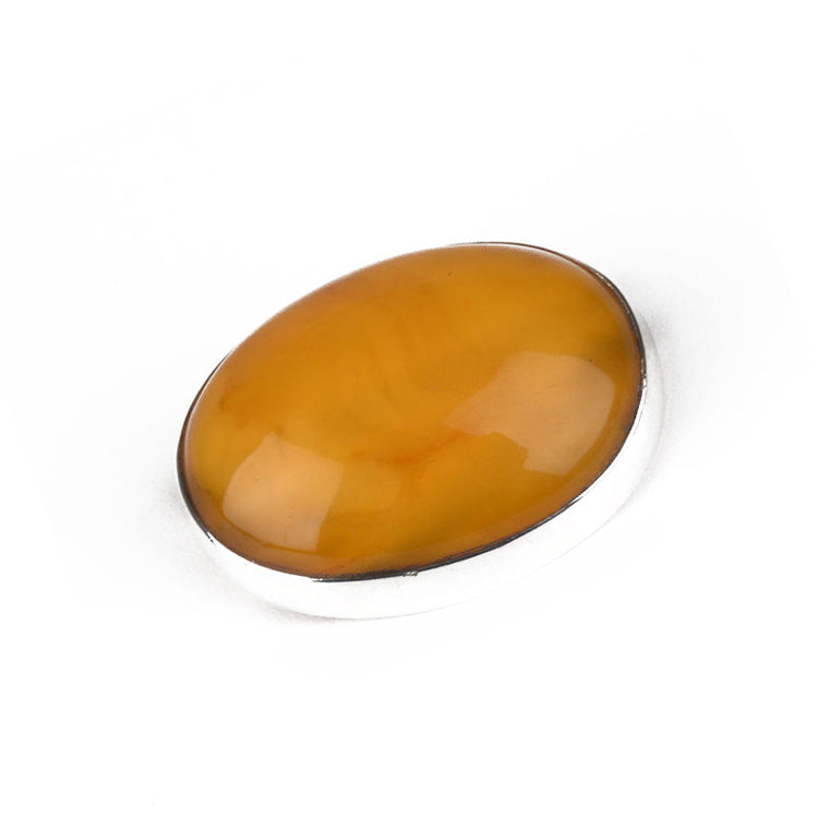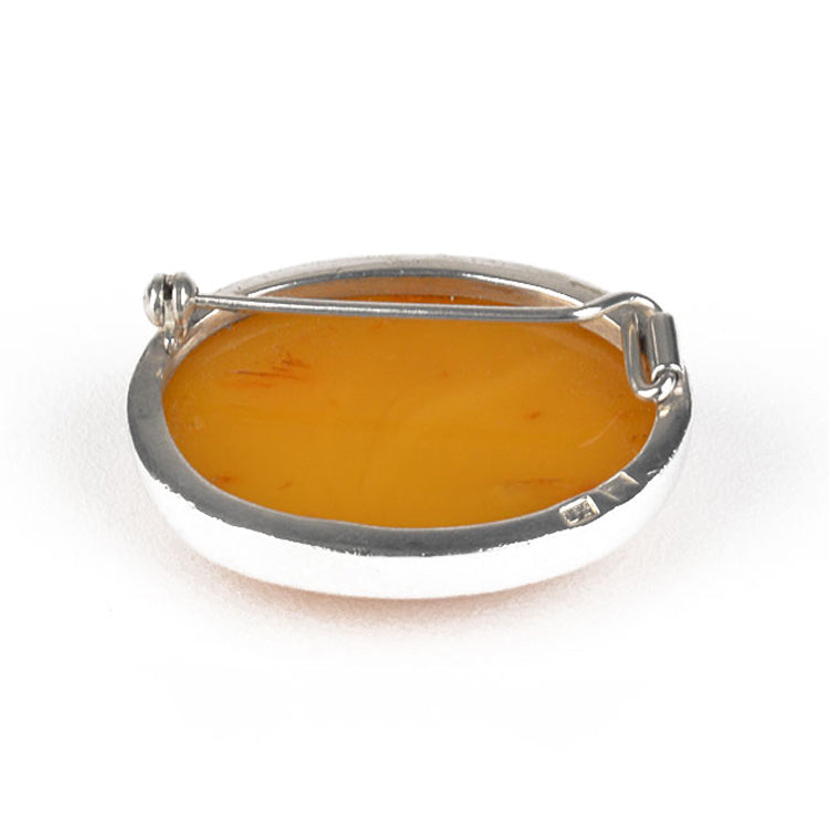 This vintage natural butterscotch amber brooch was made in about 1950, and is an excellent piece of never-go-out-of-style jewelry. The large genuine Russian Baltic Sea amber cabochon is lightly polished and set in sterling silver. Amber is known by many to be quite the healing stone, so pick out a nice amber pin and wear it on your blouse, on lapel of your jacket, your scarf... anywhere you'd like! This beautiful brooch is approximately 1 1/2" L x 1" W x 1/2" H.